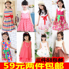 儿童纯棉印花连衣裙夏季女童全棉背心公主裙女孩舞蹈裙吊带裙包邮