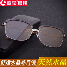 露莹天然水晶眼镜男款正品复古遮阳墨镜全框茶色平光养目石头镜