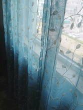 茜茜李出口美式乡村高档蓝色棉线藤叶绣花窗纱麻纱帘窗帘 贝蒂