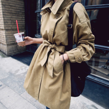 翡意2016新款春中长款修身卡其色风衣女中长款大码收腰外套