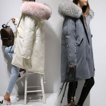 翡意新款韩版环保大毛领收腰加厚中长款修身外套羽绒服女