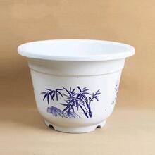 园艺阳台花盆白色经济 塑料花盆大号加厚吊兰花盆 白色底青花