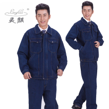 灵麒春季全棉牛仔工作服套装男汽修装饰工程服铁路电焊服劳保服