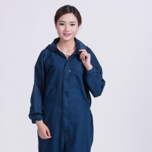 灵麒大码修身全棉连体牛仔工作服防尘服男汽修电焊工程劳保服