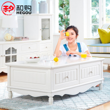 和购家具 田园实木茶几圆角方形韩式小茶几简约客厅储物茶桌7191