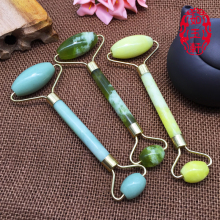 天然玉石美容器岫玉滚轮按摩棒脸部眼部美容瘦脸玉推花玉正品包邮