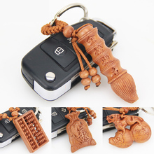 桃木雕钥匙挂件观音吉象三不猴文昌塔笔貔貅钥匙扣钥匙坠饰品包邮