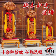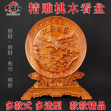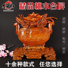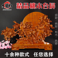 纯桃木雕刻摆件看盘家居办公室装饰品工艺台屏开业贺礼馈赠送礼品