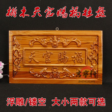 开光风水桃木天官赐福挂件摆件八卦镜门对门化煞招财纳福门牌包邮