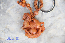 批发桃木小饰品立体桃木钥匙扣挂件马上赢马上发财马上有钱属相马