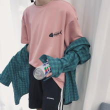 日系复古落肩 圆领宽松短袖 休闲男装中袖t恤 青少年男士夏季新款