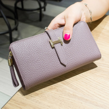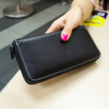 2016韩版新款潮头层牛皮纯色女士真皮钱包女长款手拿拉链卡包钱夹