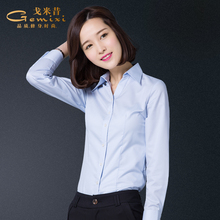 秋季v领长袖衬衫女韩版修身显瘦职业正装纯棉衬衣工作服工装上衣