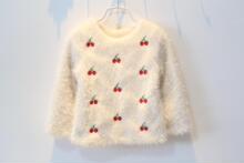 2017秋冬装女童装 白毛红苹果 樱桃加厚刺绣毛衣加绒针织衫打底衫