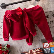2017秋冬韩男女童装连帽纯色金丝绒加厚长袖卫衣+长裤子两件套装