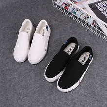 韩版春季小白鞋女魔术贴懒人鞋平底学生皮面白色帆布鞋女休闲板鞋