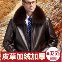 冬装新款中老年皮衣男狐狸毛领男式皮草尼克服爸爸装加厚男装外套