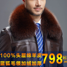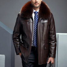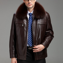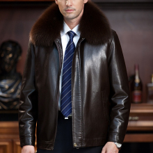 海宁中老年真皮皮衣男绵羊皮真皮夹克男狐狸毛领爸爸装皮草外套