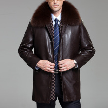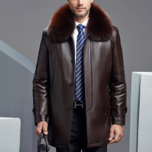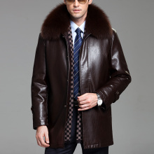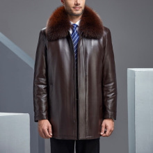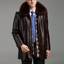 2016秋冬装海宁真皮皮衣男狐狸毛领中长款皮衣男中老年外套男皮草