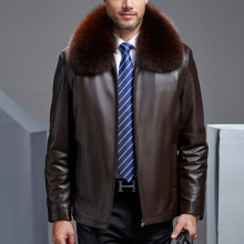 冬装新款男士狐狸毛领真皮皮衣男头层绵羊皮中老年外套尼克服男