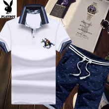 花花公子夏季男士短袖t恤套装男潮韩版半袖翻领男装上衣POLO衫zx
