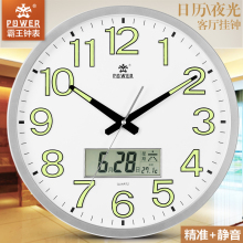 霸王钟表夜光日历时尚挂钟客厅办公室万年历大号静音简约石英钟