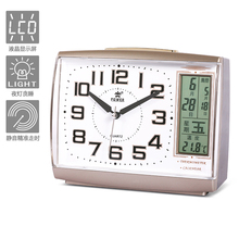 霸王万年历带夜灯温度贪睡静音闹钟 多功能办公座钟语音报时台钟