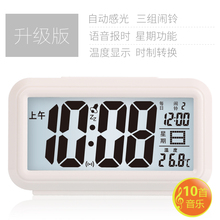 霸王正品学生创意音乐闹钟语音报时床头静音懒人感光贪睡电子台钟