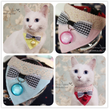 茶七七原创英伦风手工宠物狗狗猫咪兔子项圈口水巾围嘴蝴蝶结铃铛