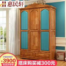 惠民轩家具美式乡村全实木衣柜整体大衣橱松木质卧室家具三门衣柜