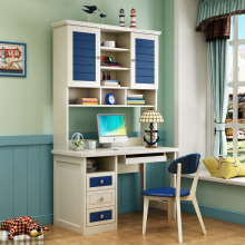 地中海书桌美式书桌书房写字桌书台1.2米高档台式电脑桌带书柜