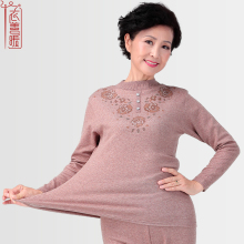 中老年保暖内衣女套装双层加绒加厚中领棉大码宽松老年人内衣