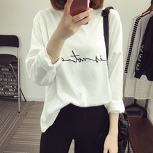 901# 新款韩版简约刺绣字母宽松长袖圆领T恤打底衫上衣内搭女黑白