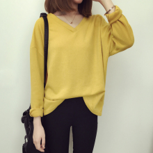 纯色长袖t恤2015秋冬新款宽松显瘦磨毛女韩版休闲v领打底衫女学生