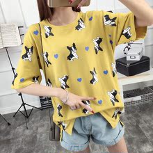 848# 秋装新款圆领长袖袖t恤女学生简约印花宽松体恤衫时尚休闲潮
