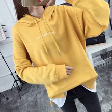 7044# 秋冬装韩版宽松大码短款闺蜜装潮纯色百搭拼接打底衫卫衣