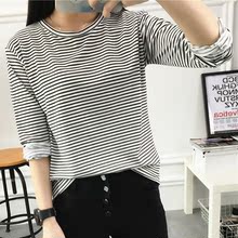 897# 2016女装春秋季新款韩版学生横条纹宽松长袖T恤