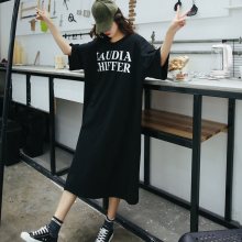 2017夏装新款女装韩国宽松休闲百搭T恤女字母T恤裙长裙短袖连衣裙
