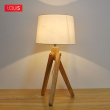 陆一原实木北欧时尚台灯宜家设计布罩欧式书房灯创意卧室三脚台灯