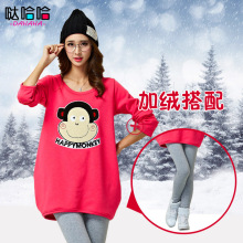 2017新款时尚孕妇春装套装中长款孕妇装冬装两件套运动服加绒上衣