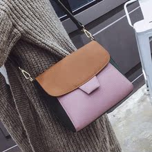 2017女包秋冬新款撞色小方包时尚潮流荔枝纹小包斜挎包百搭单肩包