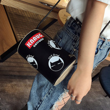 女包2017春夏新款圆筒包卡通印花简约小圆包单肩斜挎包小包包潮