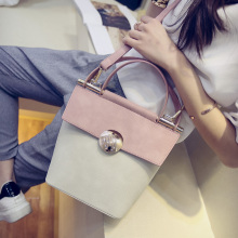 2017新款锁扣女包韩版撞色手提包拼色单肩包时尚小方包斜挎小包包