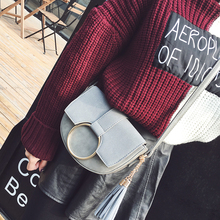 欧美马鞍包2017春季新款女包磨砂圆环包单肩斜挎包流苏小包包潮