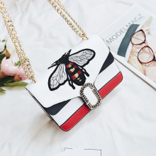 新款复古小方包2017时尚刺绣蜜蜂单肩包百搭链条撞色酒神包斜跨包