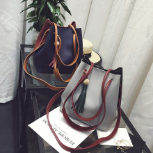 2017新款韩国复古流苏水桶包女包简约百搭单肩大包子母斜挎包包