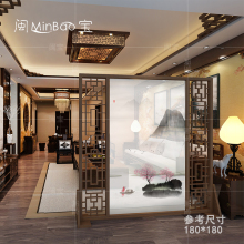现代中式实木花格镂空办公客厅隔断屏风半透纱移动玄关风水座屏