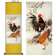 大吉图 公鸡挂画 一唱雄鸡天下白 唐云水墨画装饰画 丝绸卷轴画