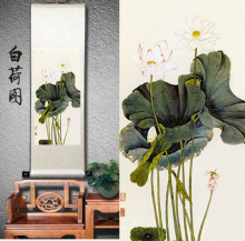 定制丝绸画卷轴礼品画荷花图花鸟画装饰客厅玄关壁画升官发财收藏