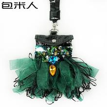 尊贵华丽亮钻水晶流苏个性女士苹果6Splus挂脖斜挎手机包女零钱袋
